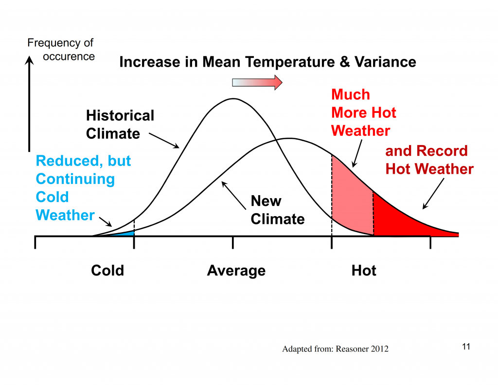 More extremes and record heat – how the new climate warms up and becomes more variable (graphic adapted by Greg Utzig from Mel Reasoner)